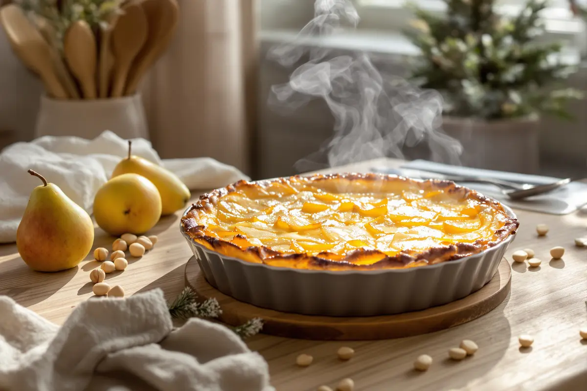 Quand les soirées sont froides et que l’énergie manque, ce clafoutis express poires–noisettes devient un vrai allié. Quelques ingrédients du quotidien, un seul saladier et une demi‑heure de cuisson suffisent. Laissez le four travailler pendant que vous mettez la table. Dès que l’odeur de poires chaudes et de noisettes grillées s’installe, vous comprendrez pourquoi ce dessert revient si souvent sur vos tables d’hiver.