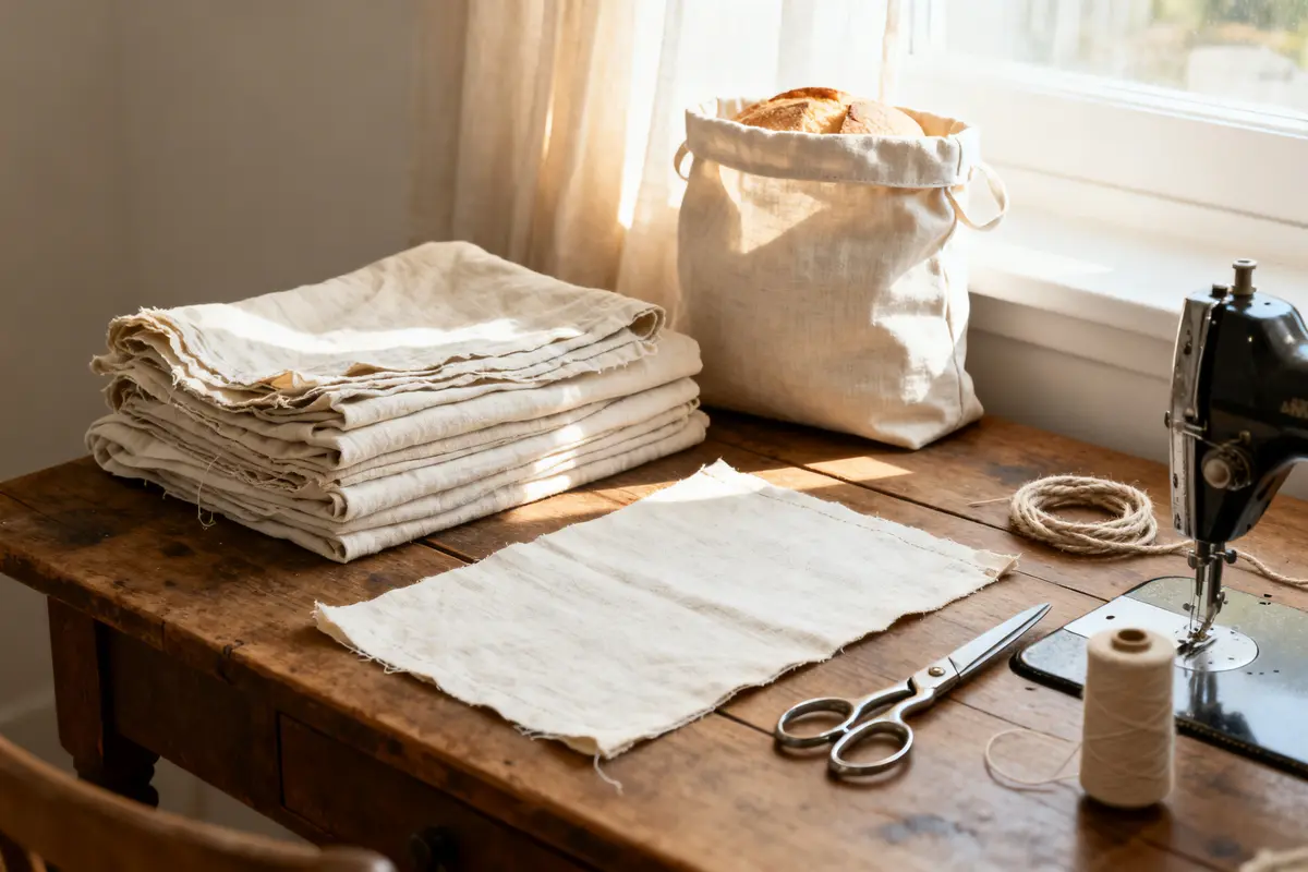 Le lin est naturellement respirant et thermorégulateur. Il limite la condensation. Le pain garde ainsi une croûte agréable et se conserve jusqu’à deux jours de plus qu’avec un sachet fermé. Vous obtenez un sac durable avec un rendu proche de ceux vendus en boutique.
